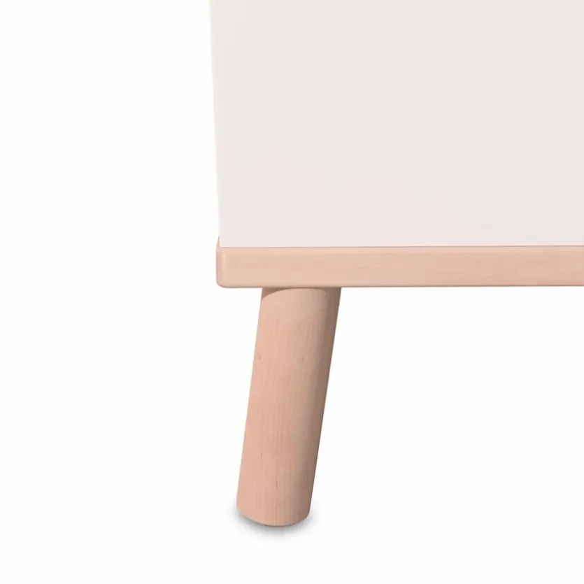 - Aus Spanplatte mit kratzfester Melaminharzfolie in Kreideweiß, Füße und Absetzungen aus massiver Birke