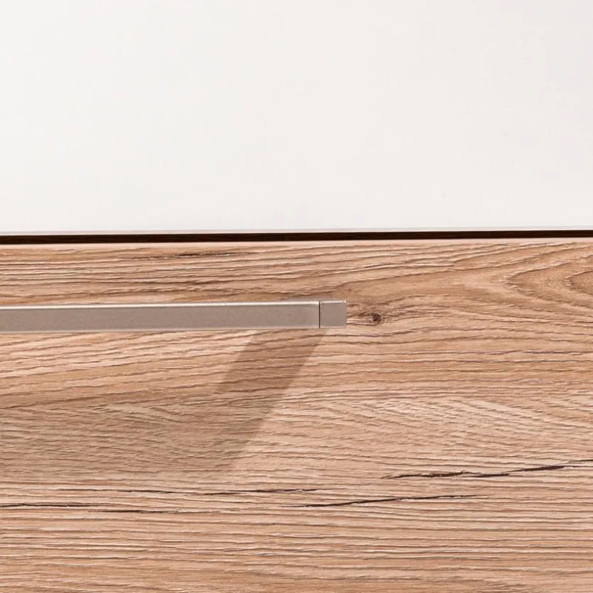 - Aus Spanplatte mit kratzfester Melaminharzfolie in Eiche-Bordeaux und Kreideweiß