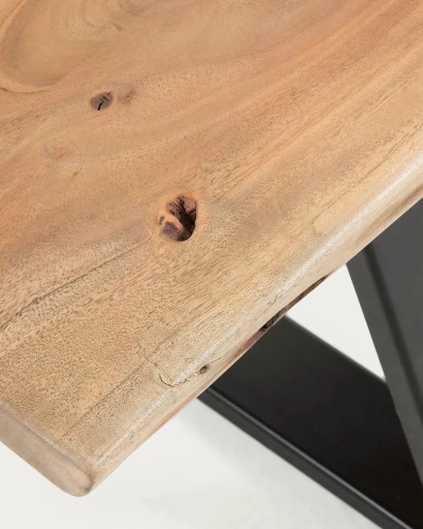 Akazie – auch Robinie – ist ein enorm widerstandsfähiges und sehr hartes Holz mit eleganter Maserung. Mit seinem hellen, edlen Look und dem wunderbar natürlichen Ton eignet es sich bestens als Rohmaterial für langlebige Massivholzmöbel.