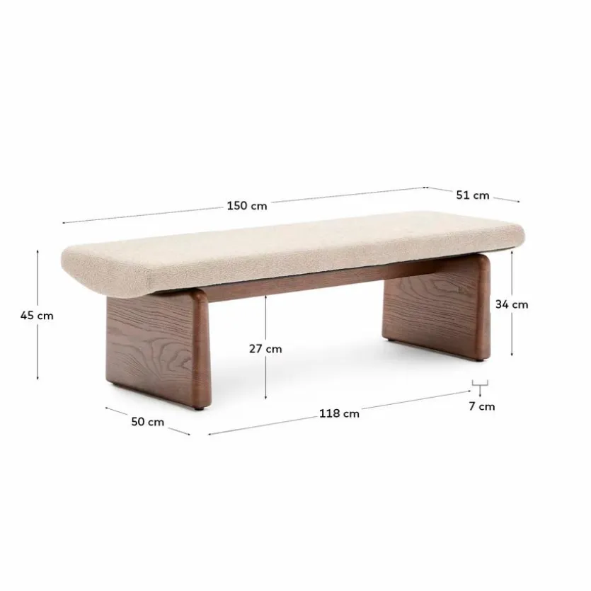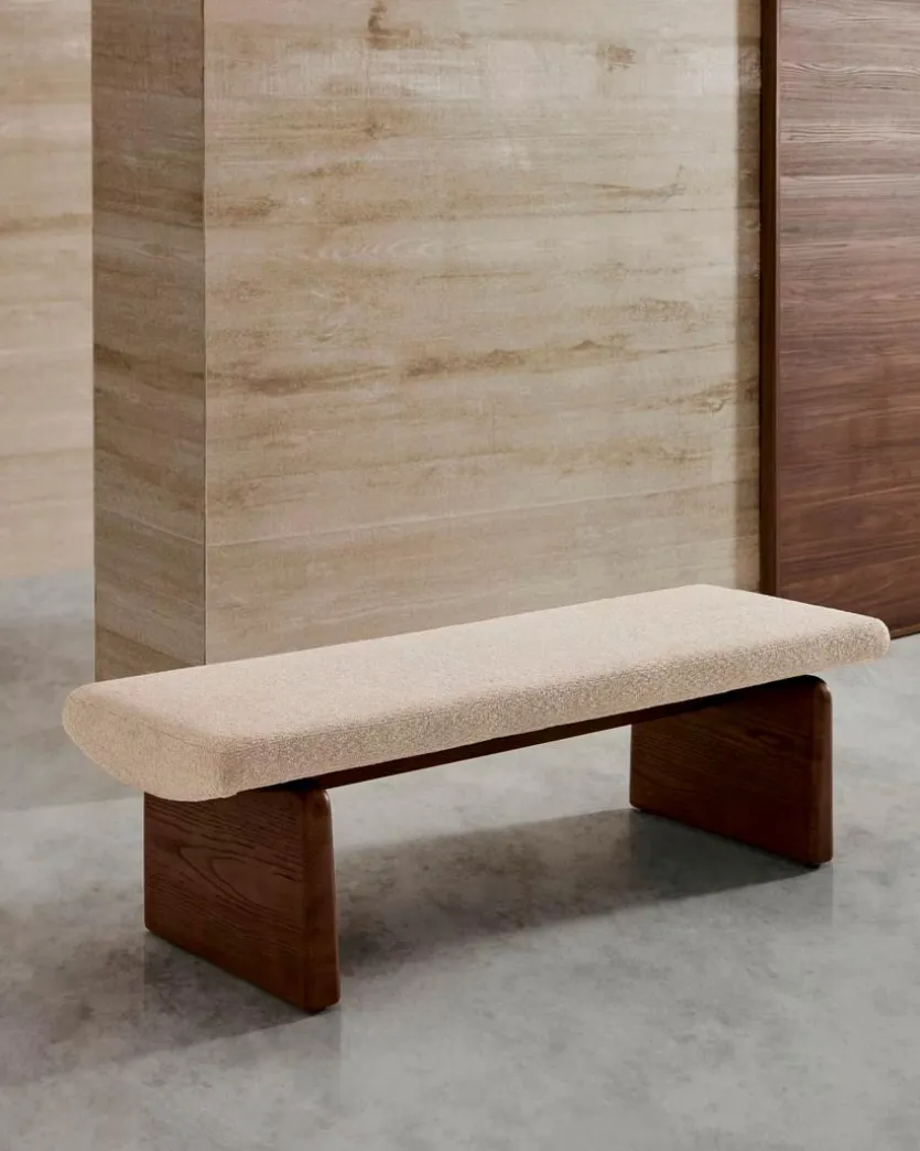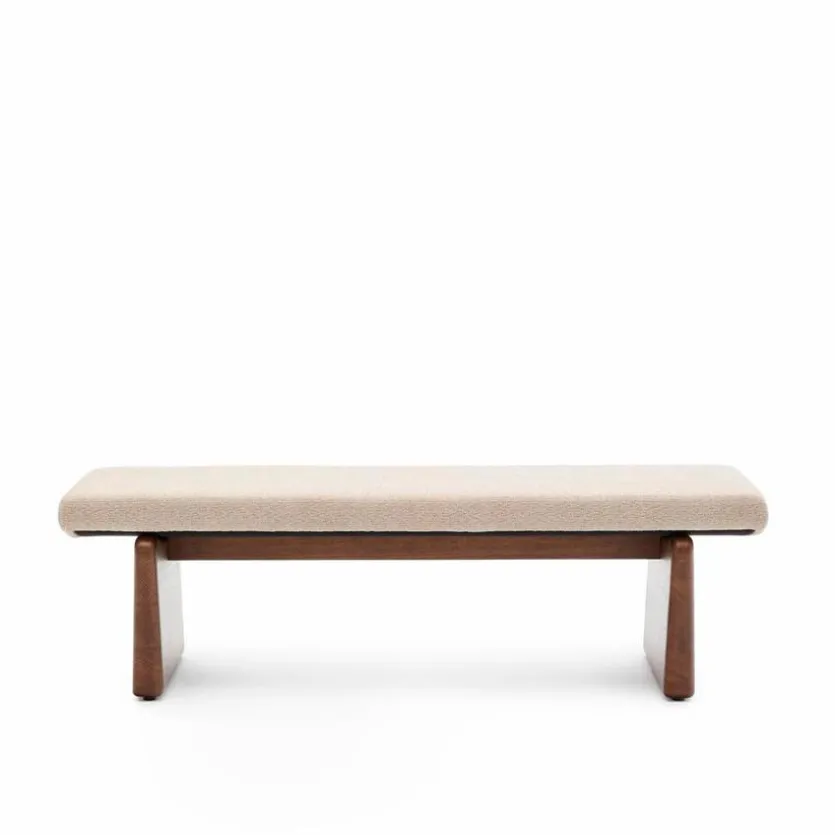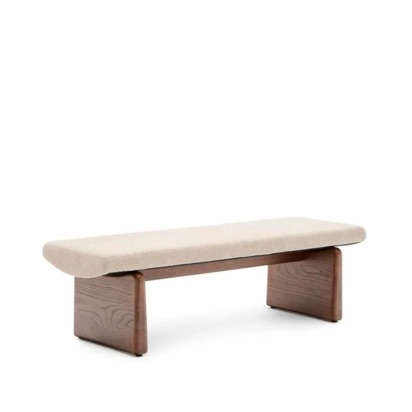 Die bis zu 130 kg belastbare Bank Topaz von Kave Home zeichnet sich durch eine hochwertige Verarbeitung und ein stilvolles schlichtes Design aus. Im Eingangs- oder im Ankleidebereich sowie als lässige Möglichkeit zum Platznehmen in anderen Wohnräumen macht die robuste Sitzbank eine gute Figur. Ein auch in haptischer Hinsicht ansprechender Bezug aus Chenille rundet die Optik der Bank Topaz ab.