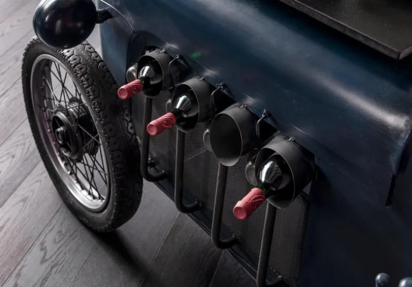 - Mit 1 Tür und 6 eingehängte Flaschenhalterungen dahinter, 6 seitlichen Flaschenhalterungen und 4 Glashalterungen für 8 Gläser seitlich
