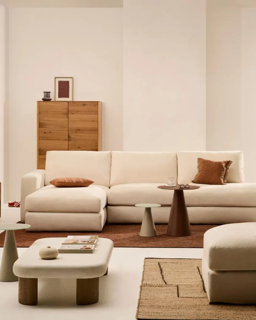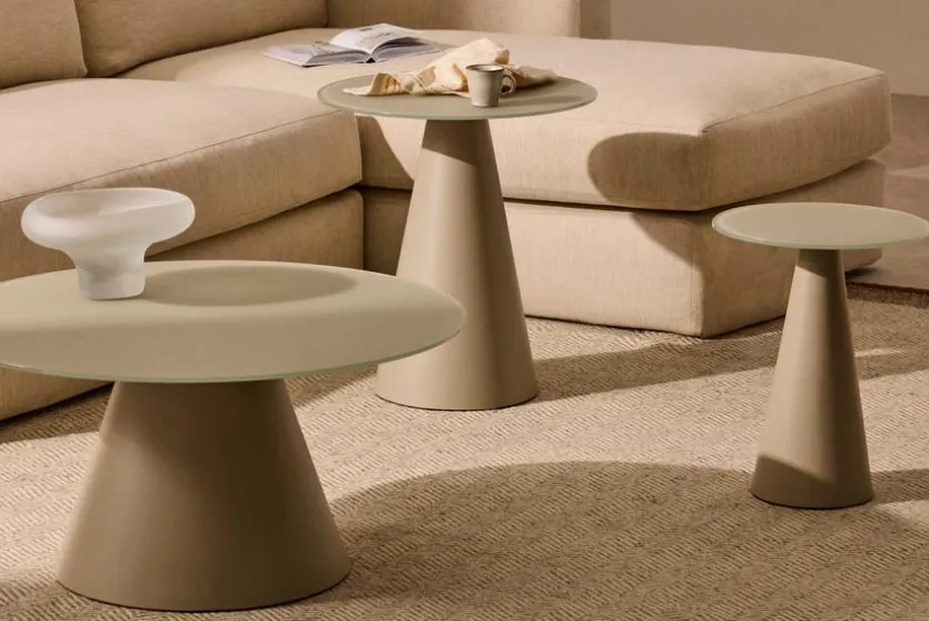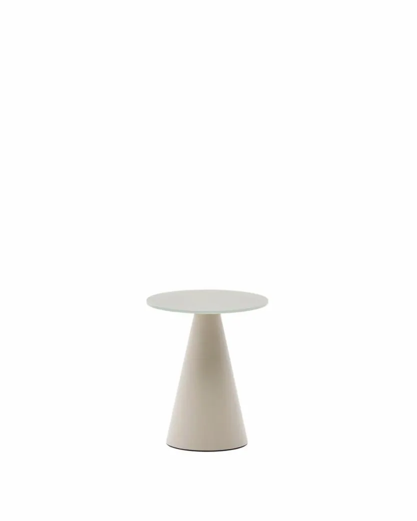 Der Beistelltisch Wilshire von Kave Home lenkt mit einer skulpturalen Designidee die Blicke auf sich. Ein kegelförmiger Sockel und eine runde Platte bestimmen den puristischen Chic dieses fantastischen Möbels. In ein minimalistisch gehaltenes Umfeld im modernen Nordic-Look passt der Beistelltisch Wilshire zum Beispiel mit Bravour.