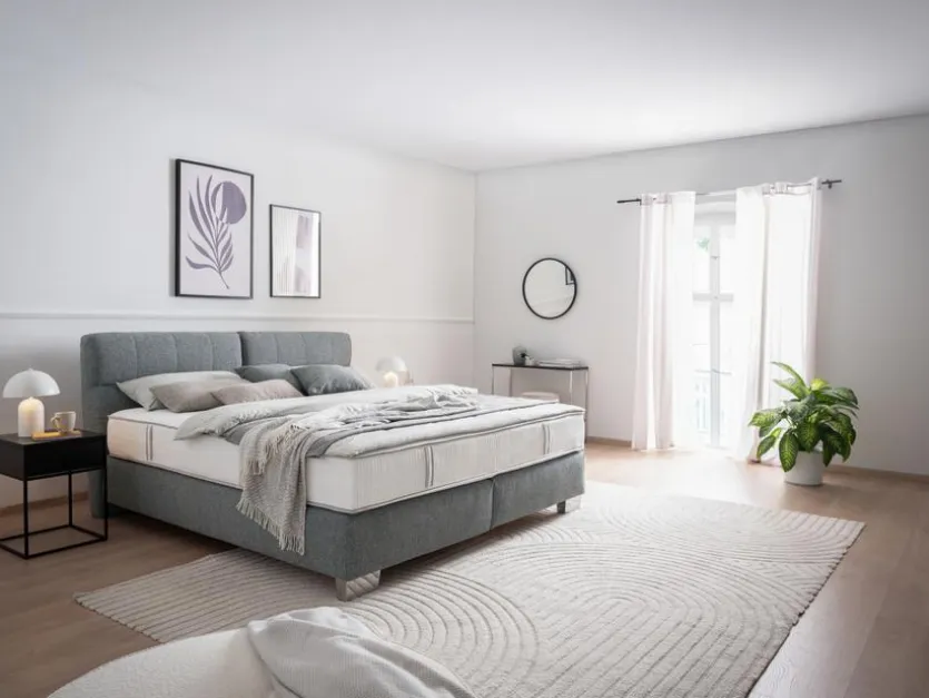 Mit seinem geradlinigen Design harmoniert das Boxspringbett Hamilton 180×200 cm von ADA Premium perfekt mit vielen Einrichtungsstilen. Es wirkt als ausgleichendes Element im Raum und lädt zur Entspannung nach einem langen Tag ein. Möchten Sie Ihr Schlafzimmer zu einer Oase der Ruhe und Gemütlichkeit machen, so ist das Boxspringbett Hamilton 180×200 cm ideal für Sie.
