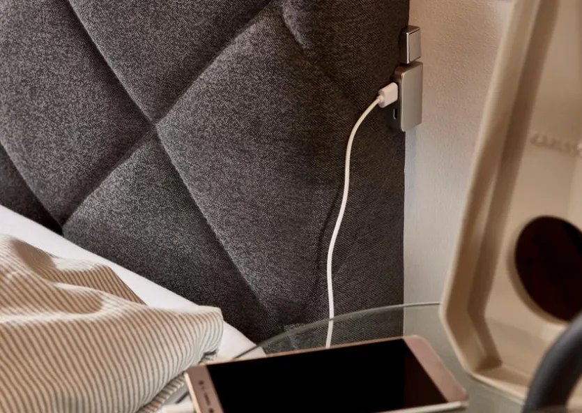 - Kopfteil mit Rautensteppung inkl. USB-Anschluss