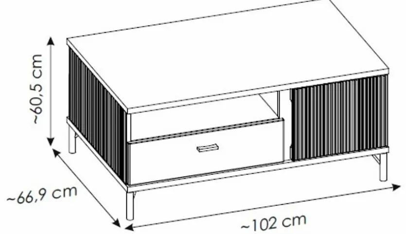 - Mit 2 Türen, 1 Schubkasten und 1 offenen Fach