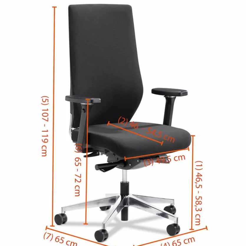 - Stufenlose Sitzhöhenverstellung mittels TÜV geprüfter Gasdruckfeder