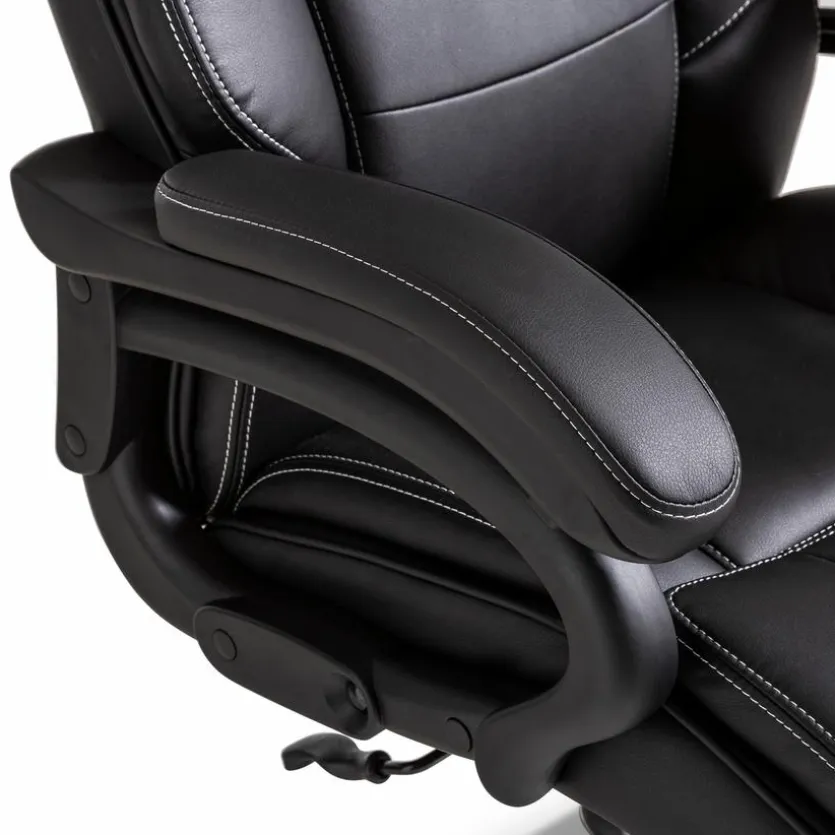 - Bezug aus pflegeleichter Lederoptik in schwarz mit Kontrastnähten in weiß, Gestell aus Metall in schwarz
