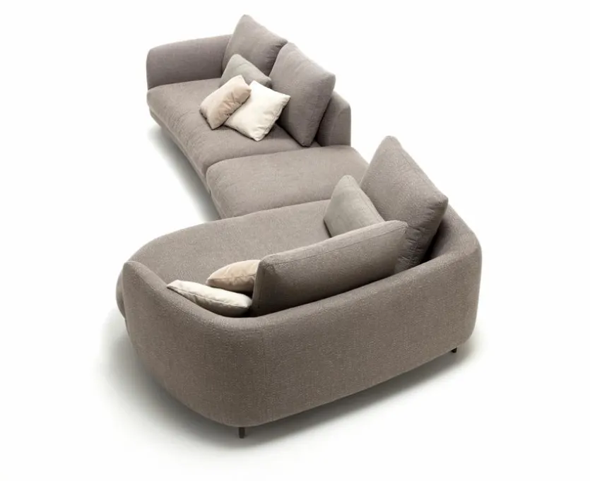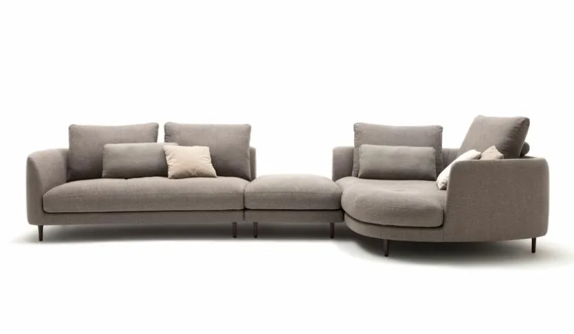 - Ecksofa besteht aus Anreihsofa XL rund links (K-XL-ASO-R 555/138 li), Anreihpolsterbank ohne Armlehne (A-PB 555/77×100), Anreihsofa mit Armlehne (K-ASO-R 555/175 re)