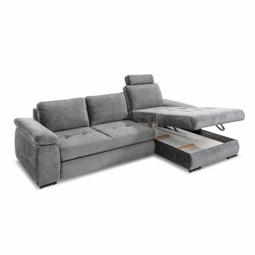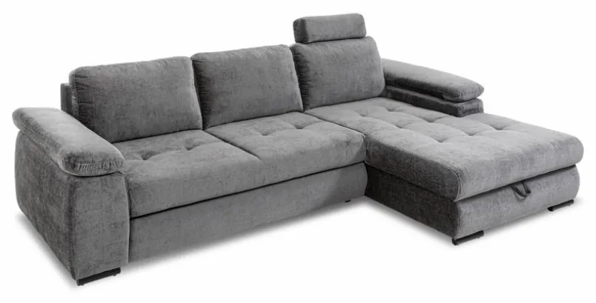 - Mit Schlaffunktion durch Frontauszug im 3-Sitzer und Bettkasten im Longchair