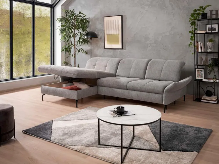 - Inkl. Schlaffunktion durch Frontauszug im 2-Sitzer und Bettkasten im Longchair