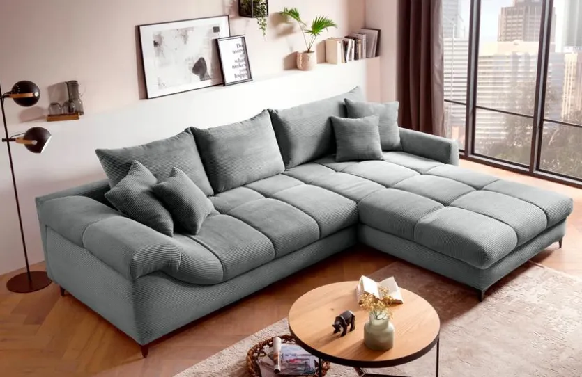 - Ecksofa besteht aus 2-Sitzer mit Armlehne und Longchair mir Armlehne, beidseitig montierbar