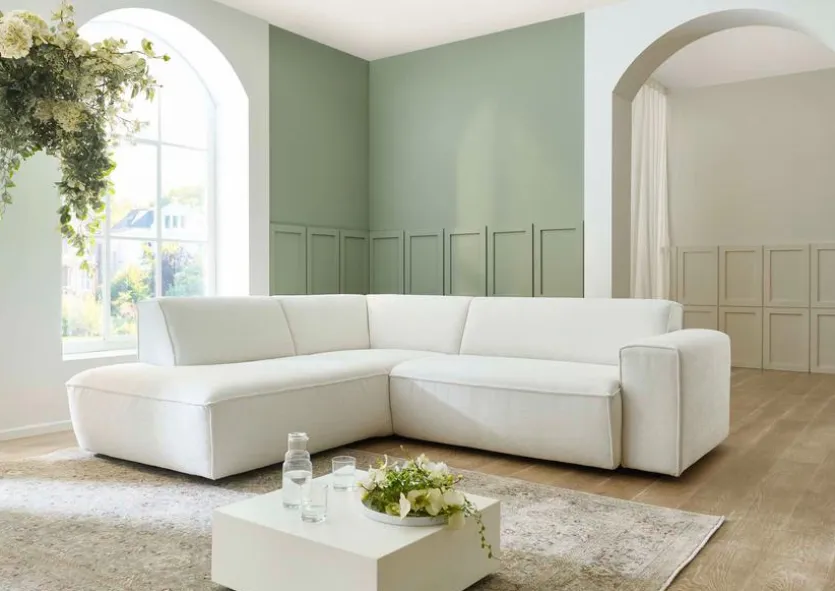 - Ecksofa besteht aus Ottomane links (1,5KOGL), 2-Sitzer XL mit Armlehne rechts (2XLR)