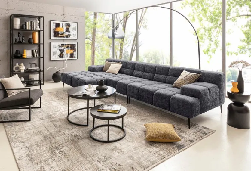 - Ecksofa besteht aus Longchair mit Armlehne links, Zwischenelement ohne Armlehnen, Element mit Armlehne rechts