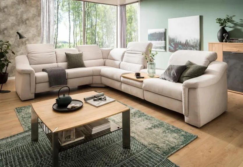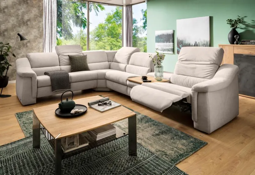 - Inkl. 2 motorische Relaxfunktionen und aufklappbarem Ablagetisch in Wildeiche (58) in Bianco weiß (681) im 2,5-Sitzer