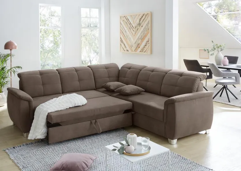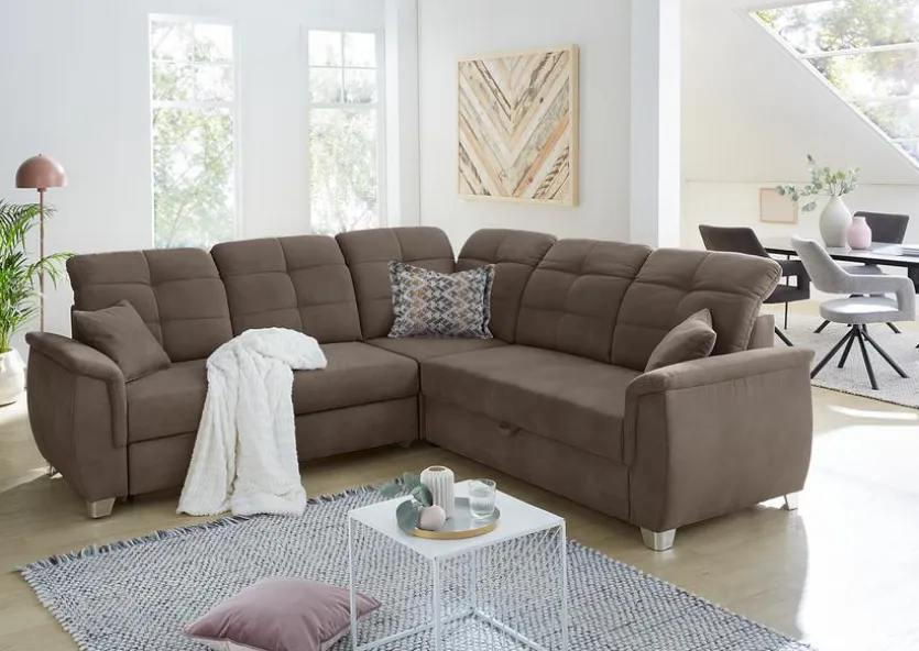 - Ecksofa besteht aus 2-Sitzer mit Armlehne links, Ecke, 2-Sitzer mit Armlehne rechts, beidseitig montierbar