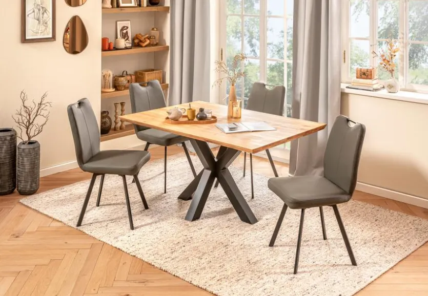 Am Esstisch Cleveland 140×100 cm nehmen Sie Ihre Mahlzeiten stets auf stilsichere Art und Weise zu sich. Eine Platte in massiver Wildeiche bildet im ästhetischen Zusammenspiel mit einem attraktiv gestalteten Gestell den geschmackvollen Look dieses Esszimmertisches. Dank seiner hervorragenden Verarbeitung bleiben beim Esstisch Cleveland 140×100 cm auch qualitativ keine Wünsche offen.