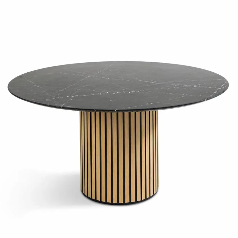 In stilvollen Interieurs liefert der attraktive Esstisch Dash Ø 150 cm die besten Voraussetzungen für gemütlich eingenommene Mahlzeiten oder für unterhaltsame Gesprächsrunden. Die gelungene Materialkombination aus glänzenden und matten Elementen verleiht dem harmonisch geformten Esszimmertisch das gewisse Etwas und setzt aparte Akzente. Als optisch ansprechender Treffpunkt bereichert der Esstisch Dash Ø 150 cm jedes Zuhause.