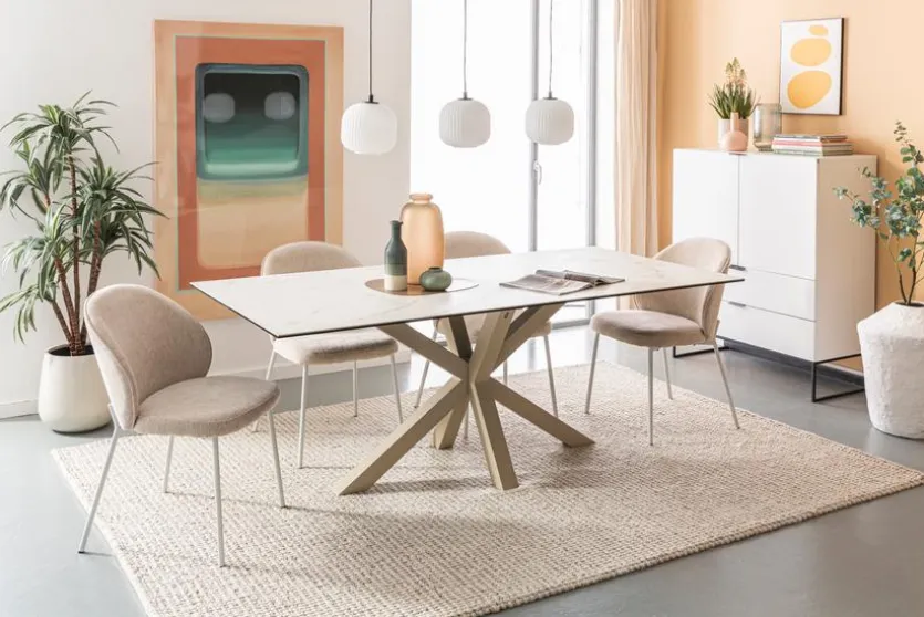 Ein markantes sternförmiges Gestell prägt die den Esstisch Heaven 160×90 cm von Actona auszeichnende raffinierte Ästhetik und verhilft zugleich zu einer exzellenten Standfestigkeit. Robuste Materialien machen den Esszimmertisch zu einem Möbelstück, das für festliche Anlässe, leckere Mahlzeiten, zünftige Brotzeiten und weitere Zusammenkünfte prädestiniert ist. Der Esstisch Heaven 160×90 cm passt zu verschiedenen Einrichtungsstilen und lässt sich vielfältig kombinieren.
