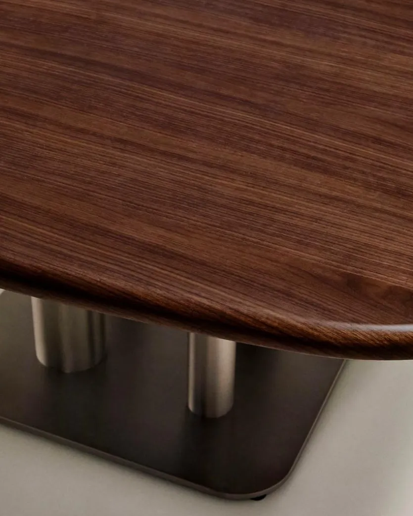 - Tischplatte aus Holzwerkstoff mit Nussbaumfurnier in dunkel