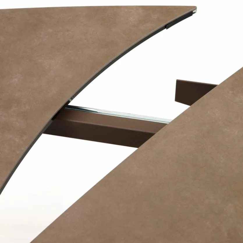 - Tischplatte aus Feinsteinzeug mit Glasauflage in braun gefärbt