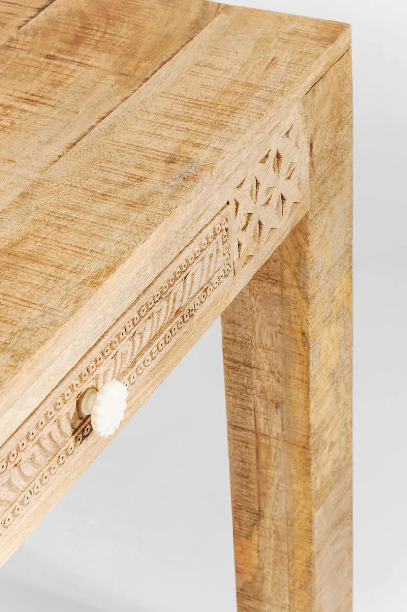 Das ursprünglich aus Indien stammende Mangoholz wurde vor einigen Jahren für die Möbelherstellung entdeckt. Es besticht mit einer hellen, natürlich braunen Farbe. Mit der frischen, klaren Optik passt es perfekt zum angesagten Massivholztrend.