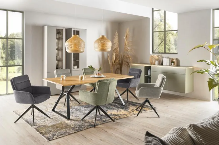 Der Esstisch Tallinn 200×100 cm von Musterring beweist perfekt, dass sich hohe Funktionalität und außergewöhnliches Design gelungen miteinander verbinden können. Ein besonderer Blickfang sind seine außergewöhnlichen Kufen, mit denen dieser hübsche Esszimmertisch punktet. Sie verjüngen sich mittig und laufen nach oben und unten trapezförmig auseinander. Dieses Top-Design lässt den Esstisch Tallinn 200×100 cm zu einem stilsicheren Key-Piece im modernen Ambiente werden.