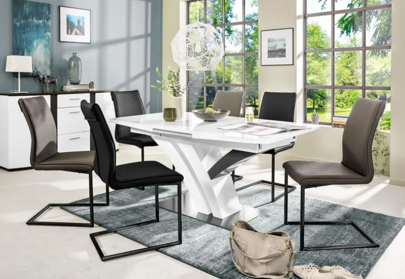 Der Freischwinger Tom hat ein schlichtes Design, das mit unterschiedlichen Einrichtungs- und Wohnstilen nahtlos harmoniert. Dank der weichen Polsterung ist dieser Schwingstuhl sehr bequem und gemütlich. So überzeugt der Freischwinger Tom nicht nur mit seiner Optik, sondern auch durch seinen hohen Sitzkomfort.