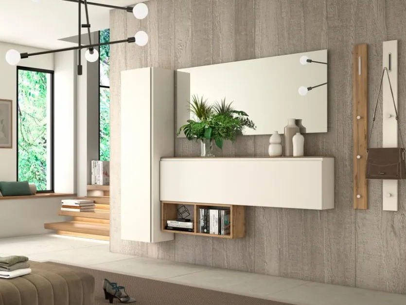 - Garderobe aus Hänge-Mehrzweckschrank, Hänge-Schuhschrank, Regal, Spiegel und 2 Garderobenpaneelen