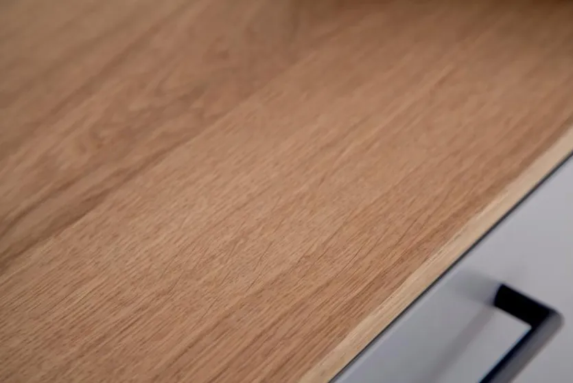 - Absetzung aus Holzwerkstoff (Spanplatte) mit Echtholzfurnier Wildeiche bianco