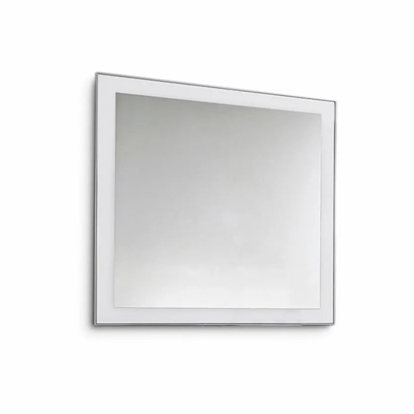 - Front aus Glas in Optiweiß auf Spanplattenfüllung mit umlaufenden alufarbigen Rahmen