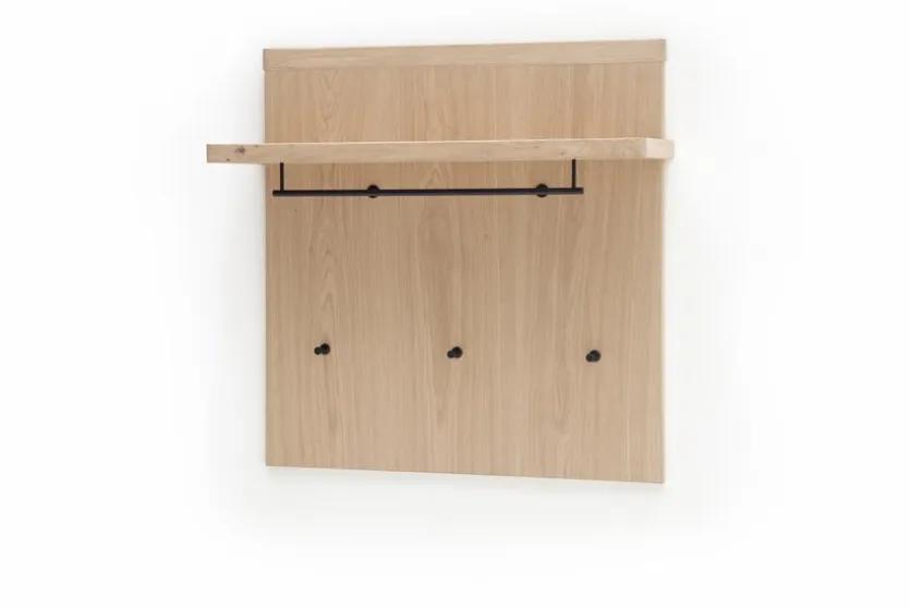 Das Garderobenpaneel Barcelona der Marke MCA nimmt in Ihrer Diele nur wenig Raum ein. Die Holzoptik der fast quadratischen Front des Dielenpaneels ist kombiniert mit einer schlichten Kleiderstange und drei Haken in dunkler Farbe. Zusätzlich zu den Hängemöglichkeiten am Garderobenpaneel Barcelona von MCA bietet ein Ablageboden Platz für einige Kleinteile.