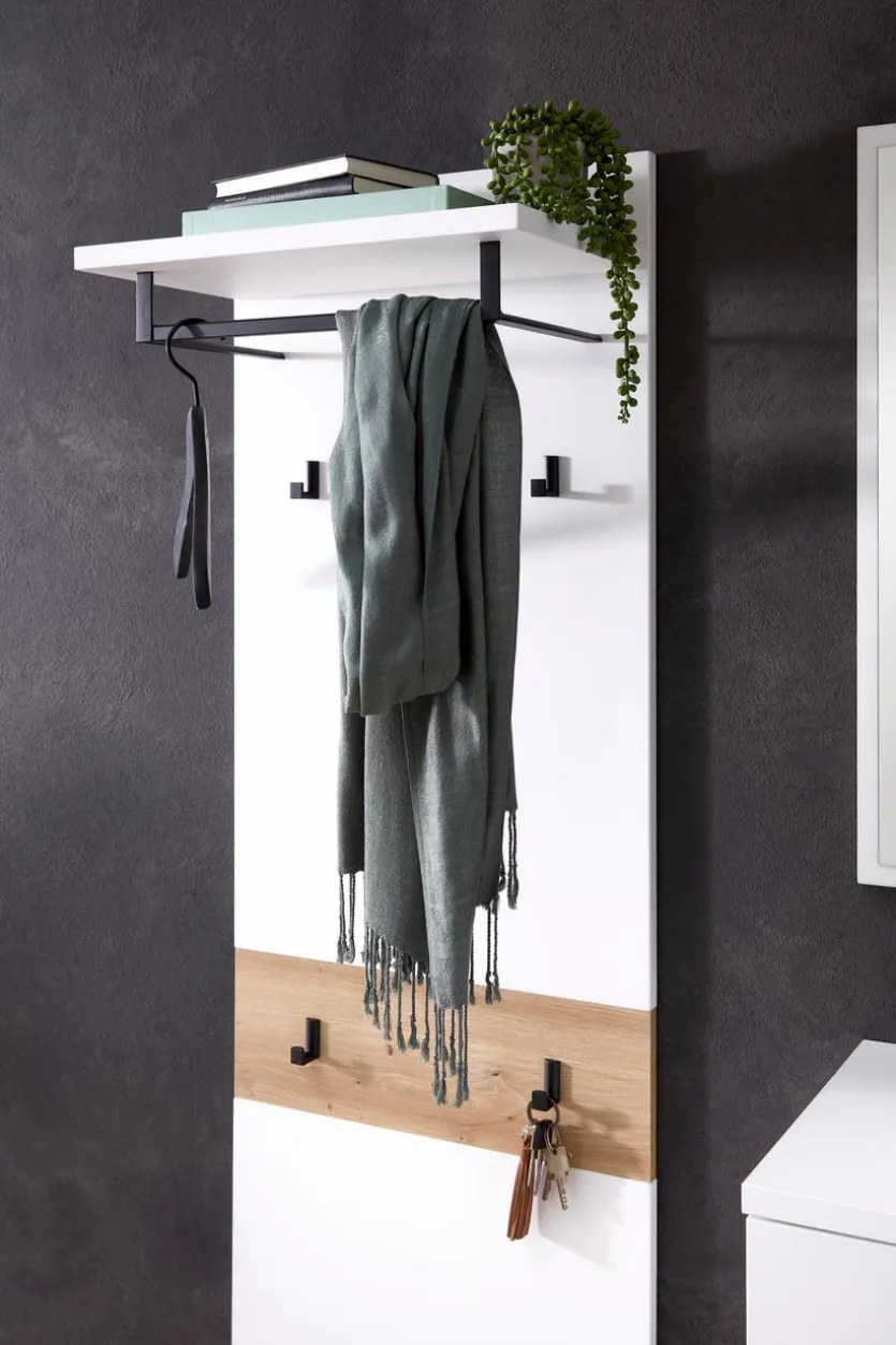 Mit dem Garderobenpaneel Memphis von Innostyle holen Sie sich eine stilvolle und zweckmäßige Ergänzung in Ihr Vorzimmer. Das Dielenpaneel verfügt über mehrere Haken für Regenschirme und einen großen Hänger für Jacken oder Mäntel. Aufgrund des modernen Designs lässt sich das Garderobenpaneel Memphis am besten mit Interieur im zeitgemäßen Stil kombinieren.