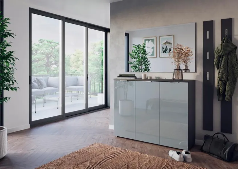 Praktisch und formschön bildet das Garderobenpaneel Veria von Germania im Eingangsbereich die gelungene Visitenkarte für die folgenden Räume. Das Dielenpaneel mit Haken in unterschiedlichen Höhen hält Jacken und Mäntel von großen oder kleinen Gästen griffbereit. Auch in schmalen Fluren schaffen Sie mit dem Garderobenpaneel Veria Platz und Ordnung.