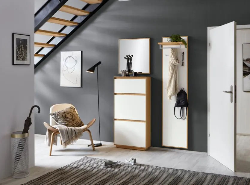 Mit dem Spiegel V100 bietet Voss Möbel ein hochwertiges Wohnaccessoire an, dessen Design zur Garderobenmöbelserie des Herstellers passt. Der fast quadratisch geschnittene Garderobenspiegel ist dank seines Rahmens gut mit Möbeln aus heller Eiche kombinierbar. Über einer Kommode oder einer Hochkommode ist der ideale Platz für den Spiegel V100 von Voss Möbel.