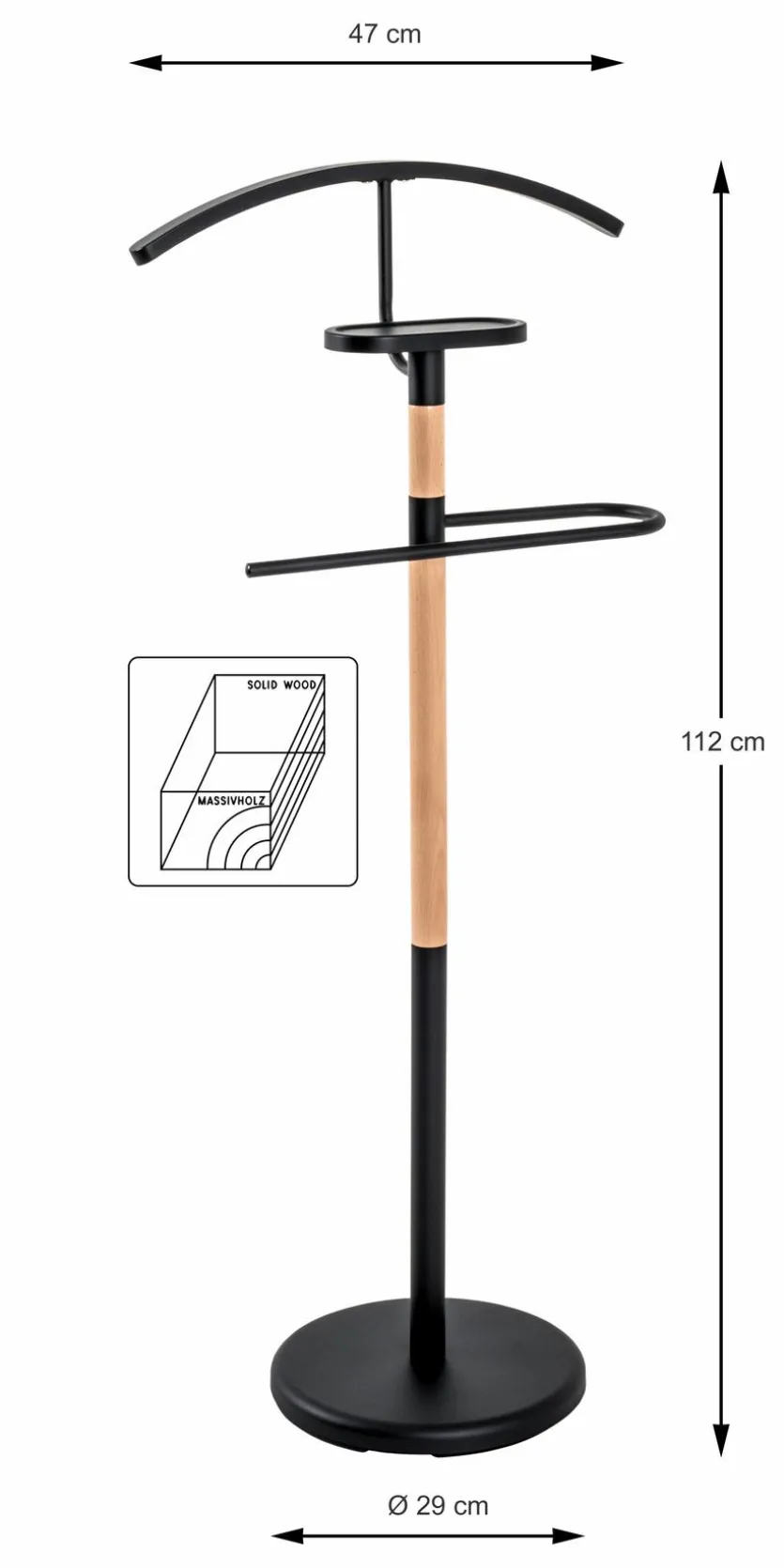 Wer sich einen puristisch gestalteten Kleiderständer für die berufliche oder private Umgebung wünscht, für den ist der Herrendiener Josef von Haku wie gemacht. Dieses praktische Accessoire benötigt wenig Stellfläche und beherbergt doch das komplette Outfit. So sind auf dem Herrendiener Josef Kleidung, Schuhe sowie Accessoires knitterfrei, stilecht und platzsparend verstaut.