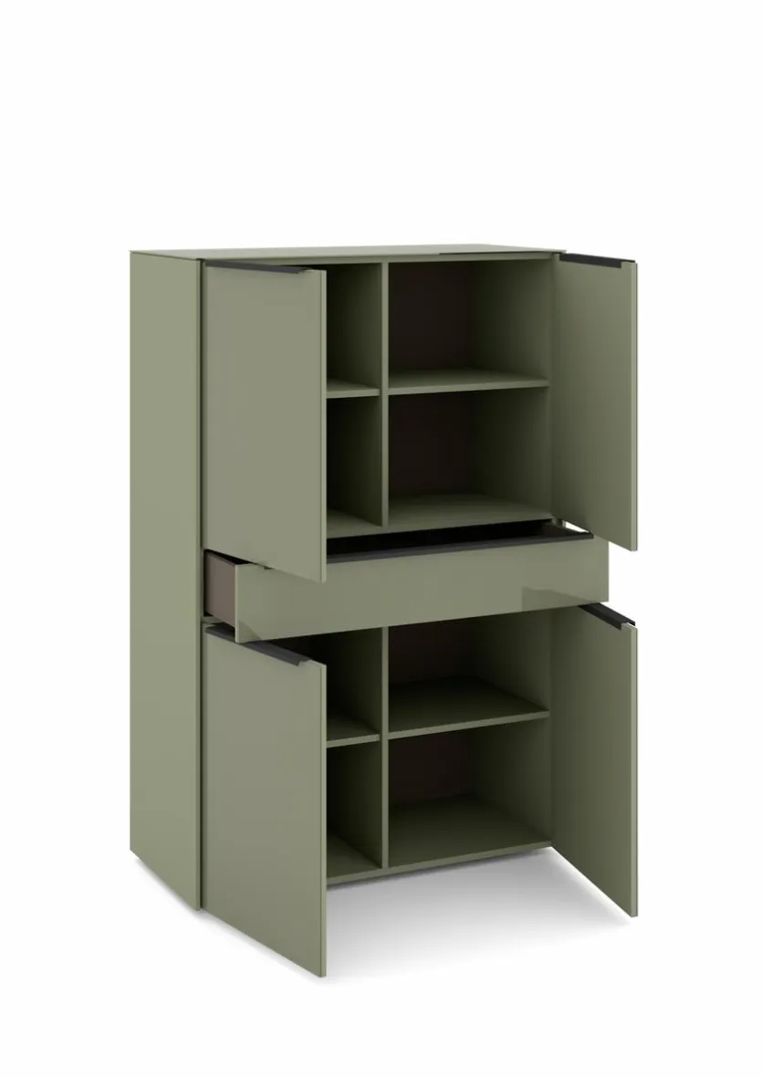 - Mit 4 Türen und 1 Schubkasten, Griffe aus Metall mit Lack in Graphitoptik