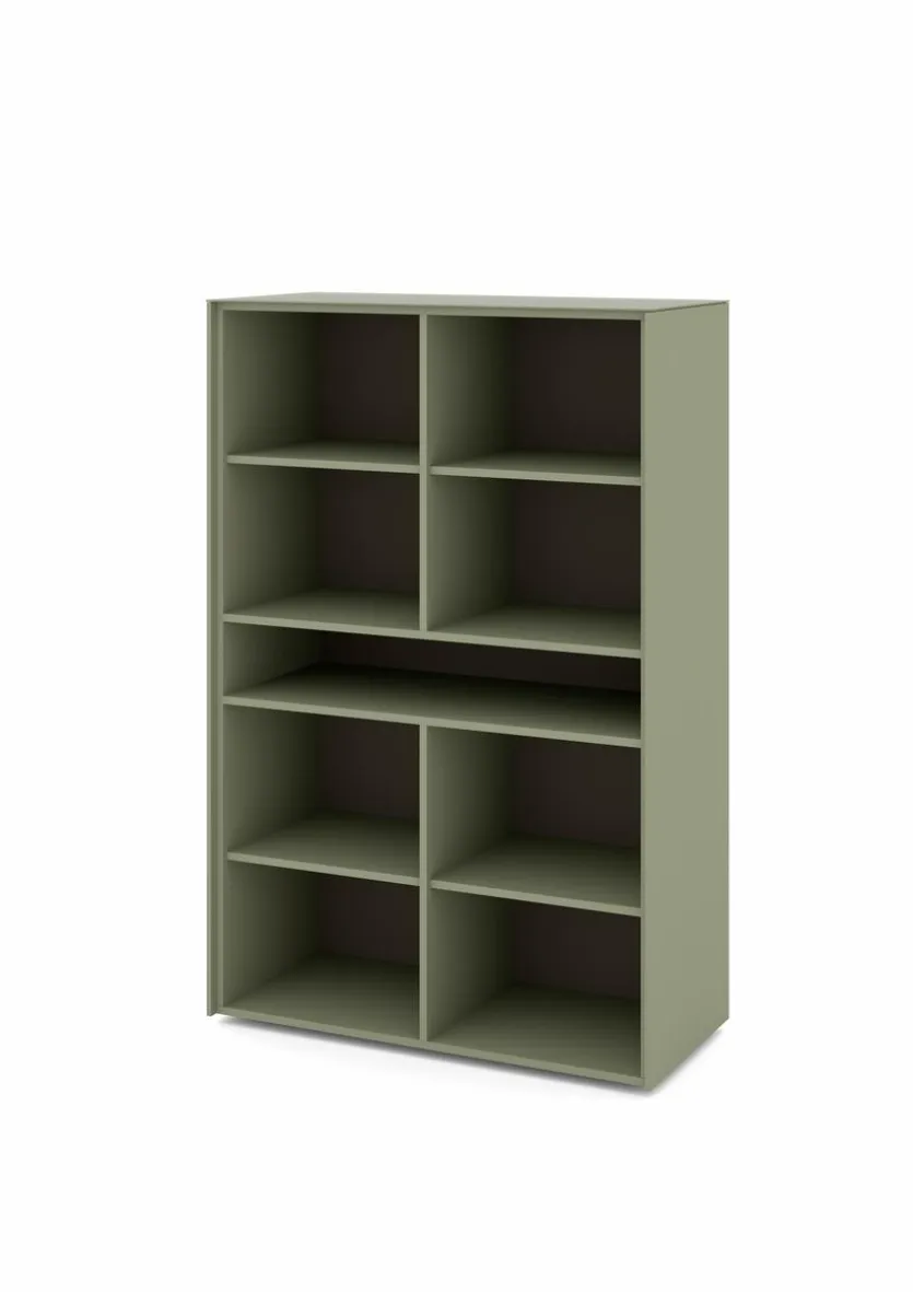- Aus Holzwerkstoff (Spanplatte) mit kratzfester Melaminharzfolie in olivgrün