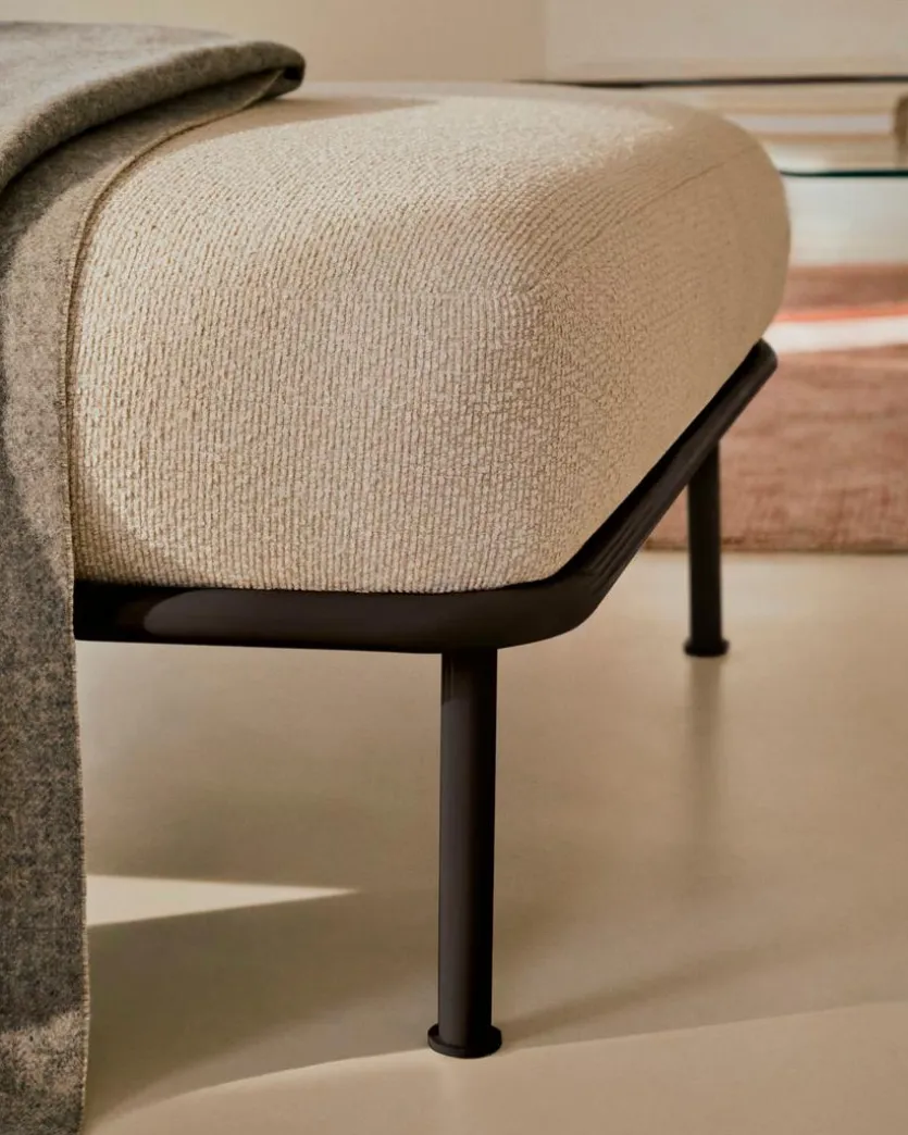 Mit dem Hocker Aurum von Kave Home erhalten Sie ein Accessoire, das sich durch stilvolle Eleganz und schlichte Schönheit auszeichnet. Dank seiner zierlichen Beine vermittelt der Sitzhocker eine schwerelos anmutende Leichtigkeit. Der Hocker Aurum harmoniert perfekt mit weiteren Möbeln der Serie, lässt sich aber auch sehr gut alleine platzieren.