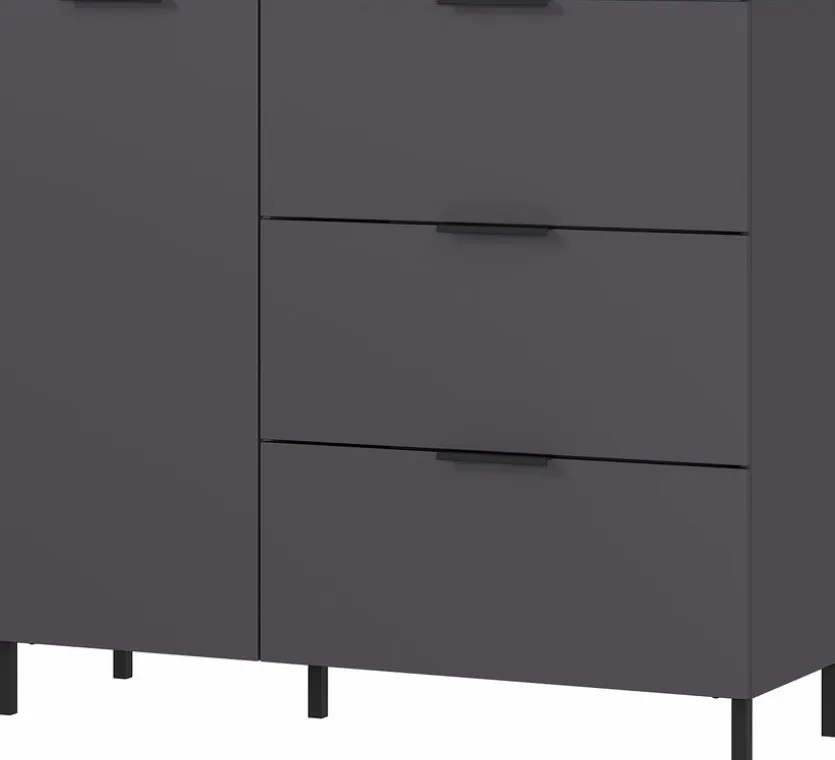 Die praktische Kommode California der Marke Germania besteht aus einem hohem Fach mit Tür sowie aus drei Schubkästen. Im Wohnzimmer, in der Diele oder im Büro bietet Ihnen dieses Aufbewahrungsmöbel viel Platz für diverse Utensilien. Zudem zeichnet sich die Kommode California von Germania durch ein geradliniges Design und eine moderne zweifarbige Optik aus.