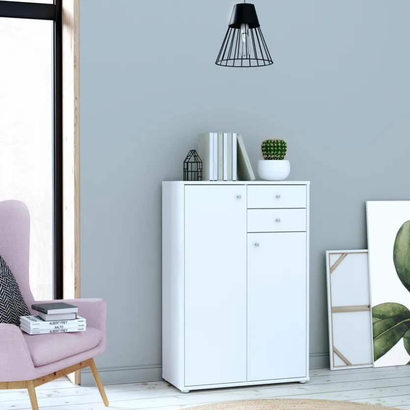 Mit der Kommode Faik der Marke FORTE erwerben Sie einen echten Alleskönner, denn dank ihres zurückhaltenden Aussehens macht sie in jedem Raum eine gute Figur. Ausgestattet mit je zwei Schubladen und Türen verspricht Sie viel Stauraum, sodass alles seinen festen Platz findet. Die Kommode Faik fügt sich spielend leicht in moderne und schnörkellose Einrichtungskonzepte ein.