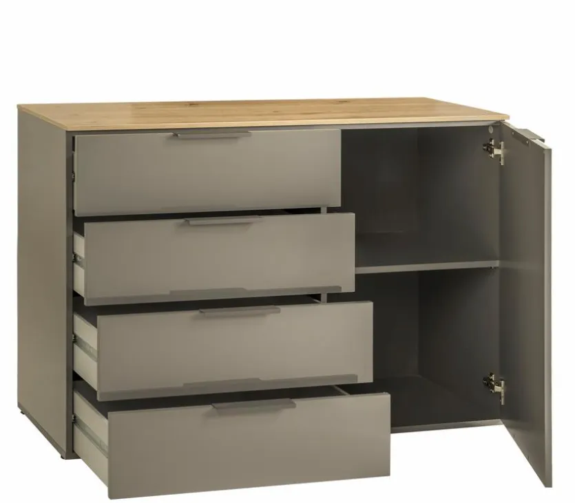In der geräumigen, übersichtlich aufgeteilten Kommode Galaverna von Composad lassen sich Textilien, Haushaltsaccessoires oder Kleinigkeiten übersichtlich verstauen. Das schlicht designte Möbel ist mit schmalen Griffleisten ausgestattet und bietet auf der Oberseite weitere Abstellfläche. Ob im Flur, im Wohn- oder im Schlafbereich, die Kommode Galaverna trägt zu einem aufgeräumten Ambiente bei.