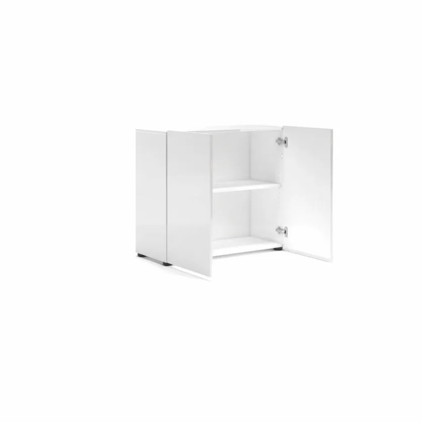Wer sich für minimalistisches Design begeistert, hat mit der Kommode Mister sein neues Lieblingsstück gefunden. In der Oberfläche des komplett auf Hochglanz polierten Möbelstücks spiegelt sich Ihr Interieur wider, was dem Sideboard einen filigranen Look verleiht. In ihrem Inneren bietet die Kommode Mister viel Stauraum für Ihre Accessoires.