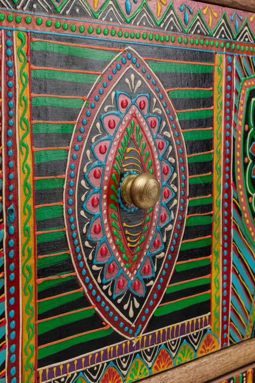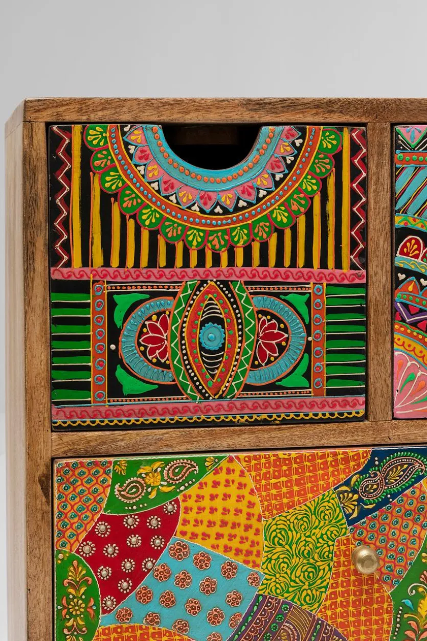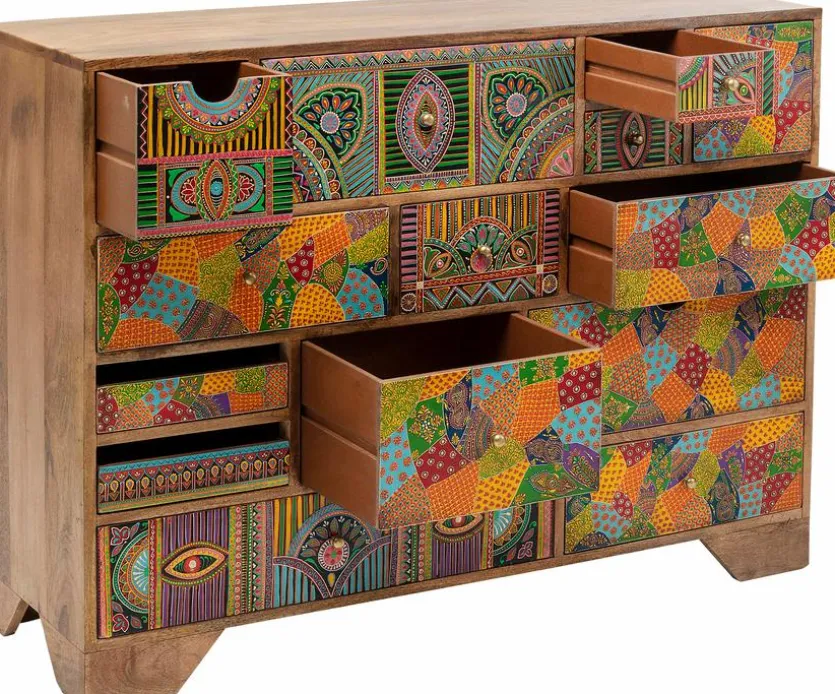 Die außergewöhnliche Kommode Paradise 84708 der Top-Marke KARE ist ein farbenfroher Blickfang für jede Wohnung. Sie ist aus hochwertigem Mangoholz gefertigt und verfügt über 14 Schubladen unterschiedlicher Größe. Damit bietet sie nicht nur Aufbewahrungsmöglichkeiten für sämtliche Dinge des Alltags, denn ihre exotischen, bunten Muster machen die Kommode Paradise 84708 von KARE auch zu einem optischen Highlight in Ihrer Wohnung.