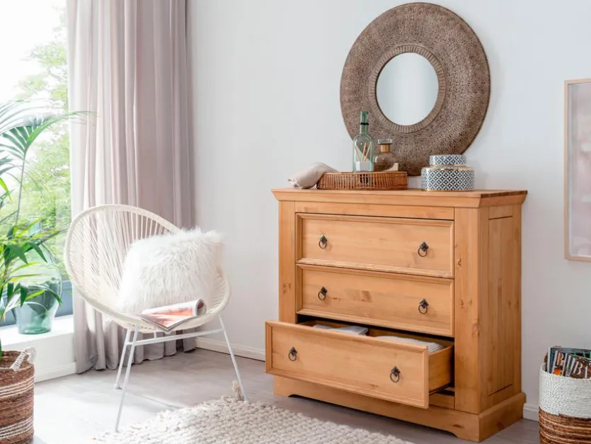 Die schicke Kommode SZ-0079 der Marke G+K begeistert mit ihrem markanten Look. Charmante Details sorgen für reizende Akzente, an denen sich das Auge erfreut. So passt das attraktive Möbelstück zum Beispiel hervorragend in das Wohn- oder Schlafzimmer. Auch im Flurbereich sorgt die Kommode SZ-0079 für ein Ambiente zum Wohlfühlen.