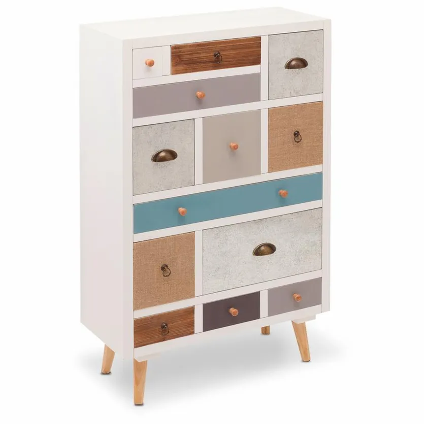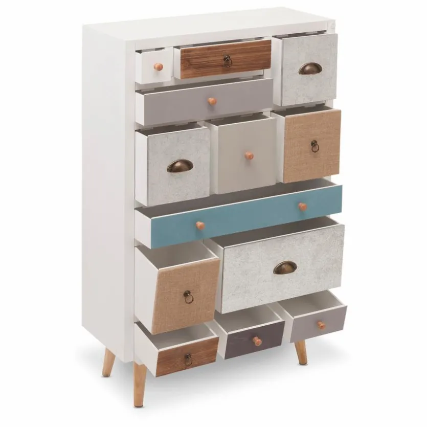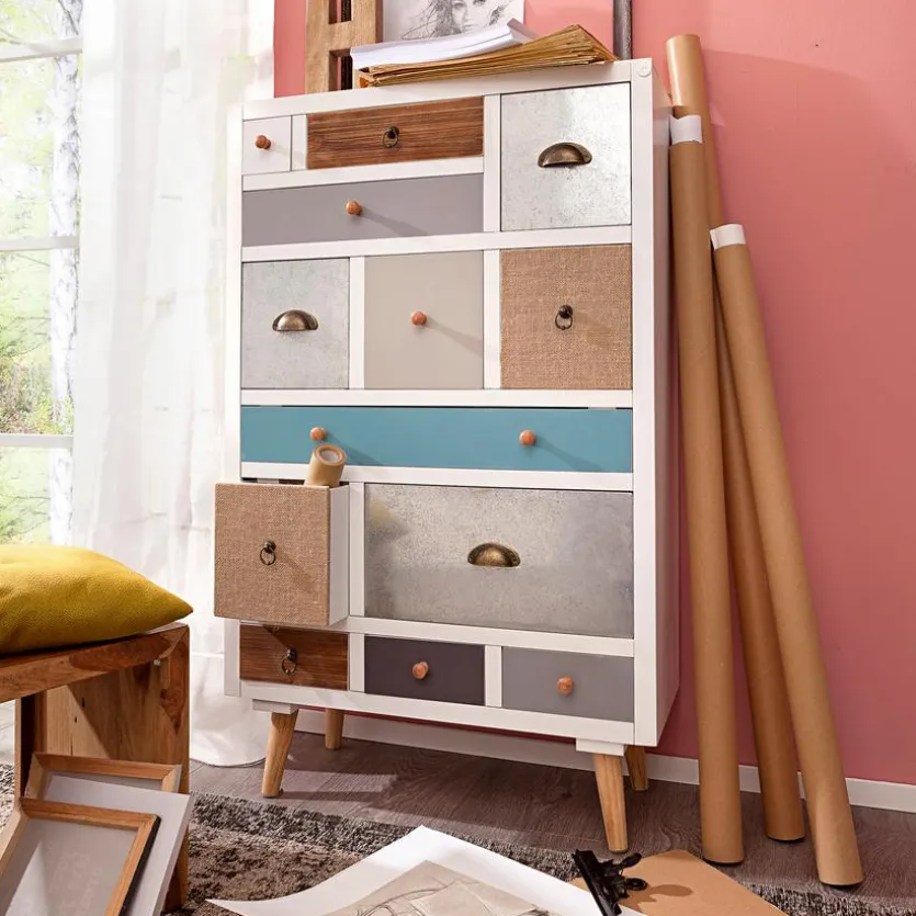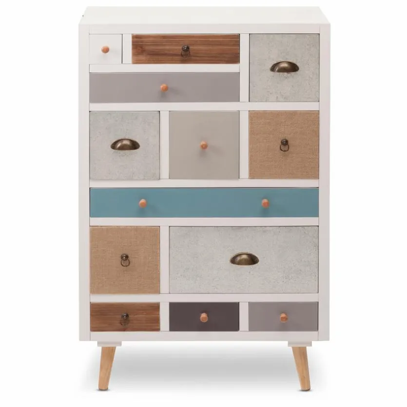 Die Kommode 13S Thais versprüht durch ihr farbenfrohes Design einen ganz eigenen Charme. Aufgrund des modernen, aber unkomplizierten Looks lässt sich der kleine Schrank einfach mit weiteren Möbeln kombinieren. Besonders praktisch sind die 13 unterschiedlich großen Schubladen, in denen sich vielerlei Dinge schnell verstauen lassen. Kurzum, die Kommode 13S Thais vereint modernes Design mit hoher Funktionalität.