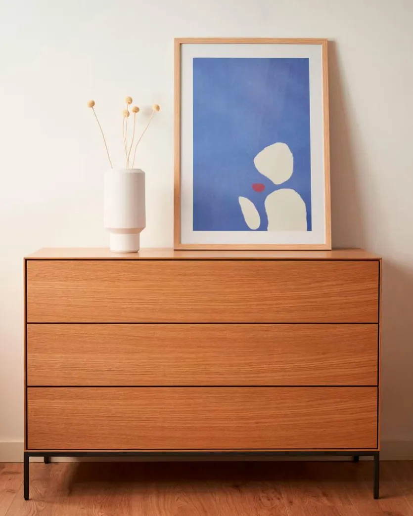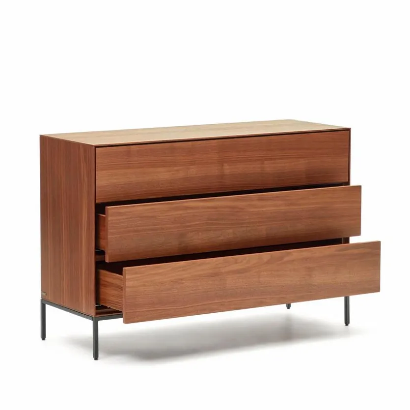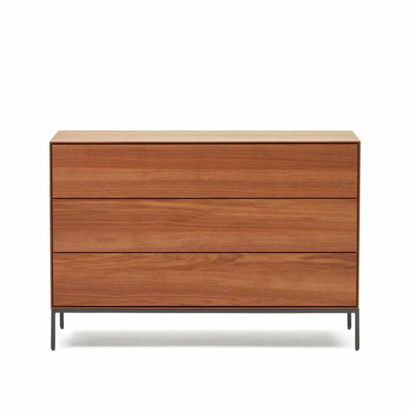 Die Kommode Vedrana von Kave Home wirkt herrlich zeitlos. Rustikalität vermittelnde Holzfurniere, klare Strukturen mit grifflosen Fronten und ein minimalistisches Metallgestell mit Matt-Finish sind hier die gestalterischen Elemente. Um für eine Einheit zu sorgen, bietet es sich an, die Kommode Vedrana mit weiteren Möbeln aus dieser Kollektion zu kombinieren.