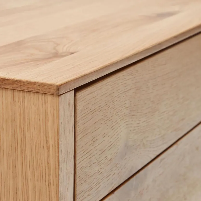 Die Nachtkommode Alguema wirkt wunderbar modern, aber dennoch herrlich naturverbunden. Eichenfurnier, klar gezeichnete, geradlinige Konturen und eine frei von Griffen gestaltete Front bestimmen das Design dieses durchdacht konzipierten Nachttischchens. Als Ergänzung zu einem Bett im zeitgemäßen Wohlfühl-Look ist die Nachtkommode Alguema eine großartige Option.