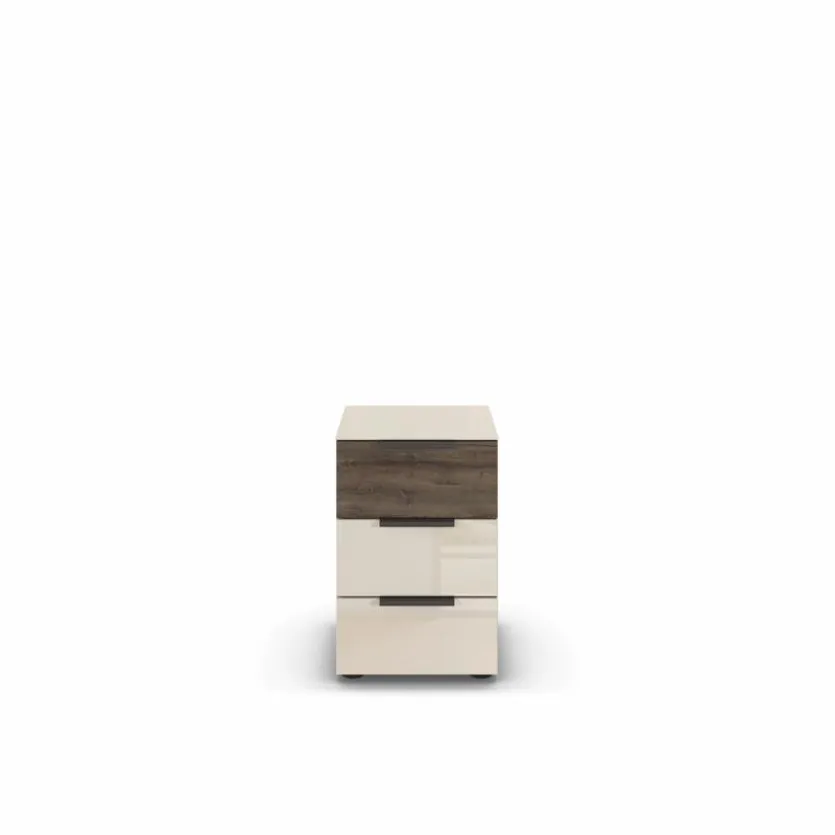 - Korpus aus Holzwerkstoff (Spanplatte) mit hochwertigem Dekor-Druck in Champagner