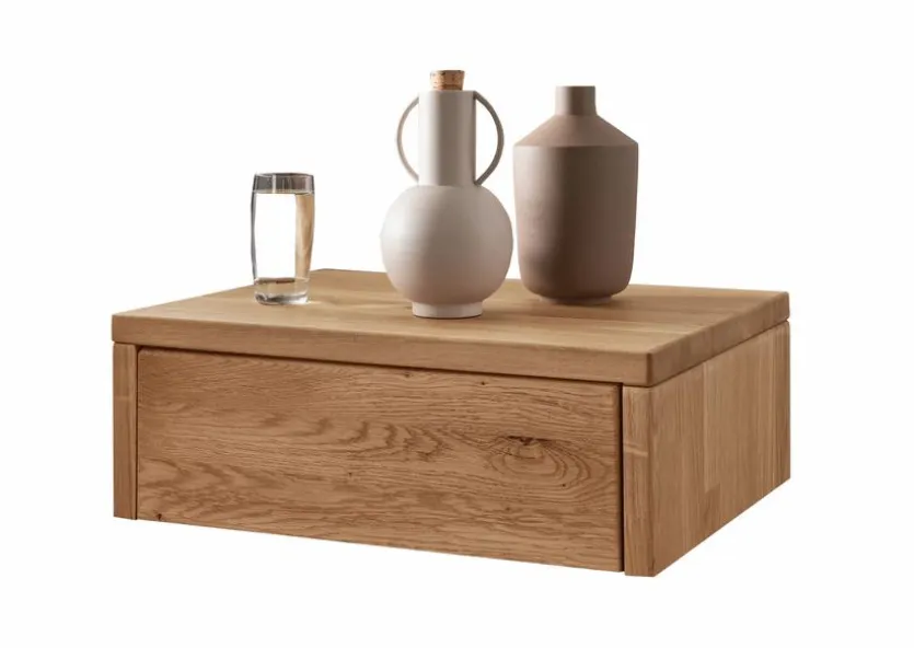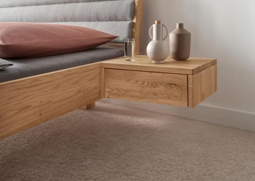 Der Nachttisch BE-0828 von G+K ist aus massivem Holz gefertigt, durch das er für eine warme Atmosphäre in Ihrem Schlafzimmer sorgt. Am besten lässt sich die Nachtkonsole mit anderen Holzmöbeln kombinieren. Sie können den Nachttisch BE-0828 direkt am Bettkasten anschrauben. So sorgt er für Ablagefläche und Stauraum für persönliche Gegenstände und durch das schwebende Design für einen besonderen Akzent im Schlafzimmer.