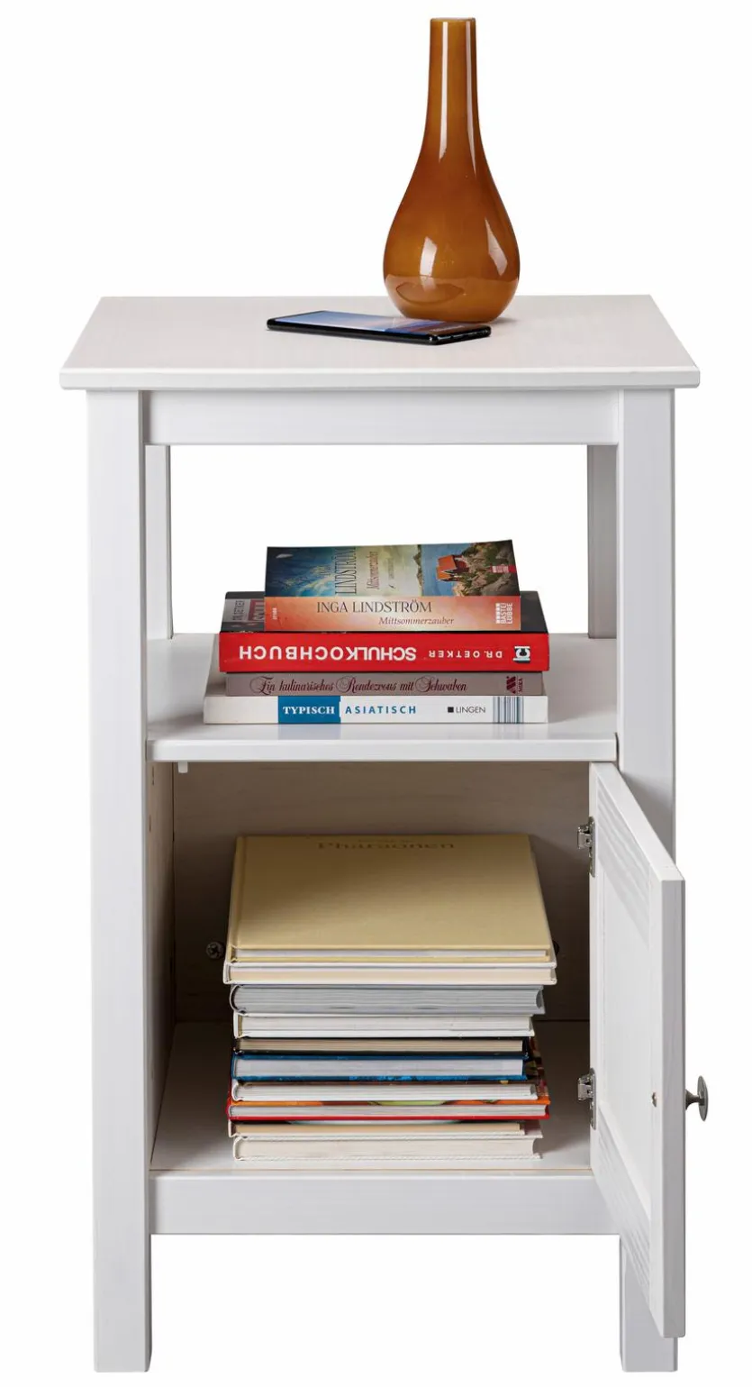 Mit dem Nachttisch Chilly der Marke Inter Link bereichern Sie das Schlafzimmer um ein ebenso kompakt gestaltetes wie retro-inspiriertes Möbelstück. Die Nachtkonsole garantiert, dass alle benötigten Utensilien stets griffbereit bleiben. Zu diesem Zweck bietet Ihnen der Nachttisch Chilly viel Platz auf seiner Ablage, in einem offenen Fach und hinter der Tür.